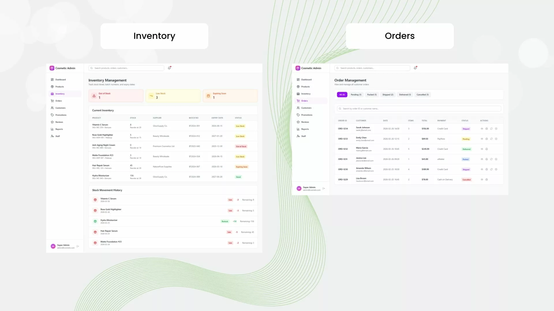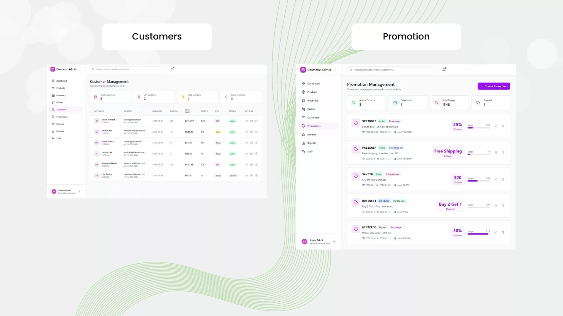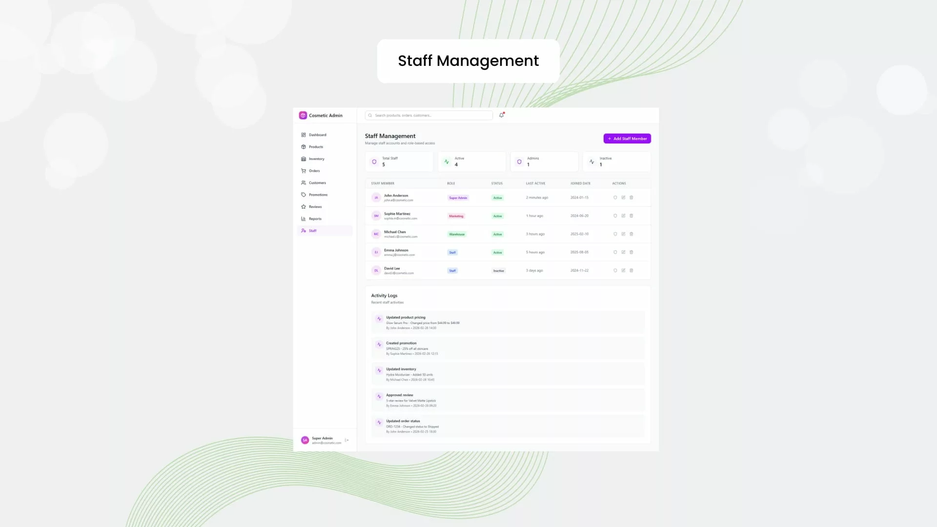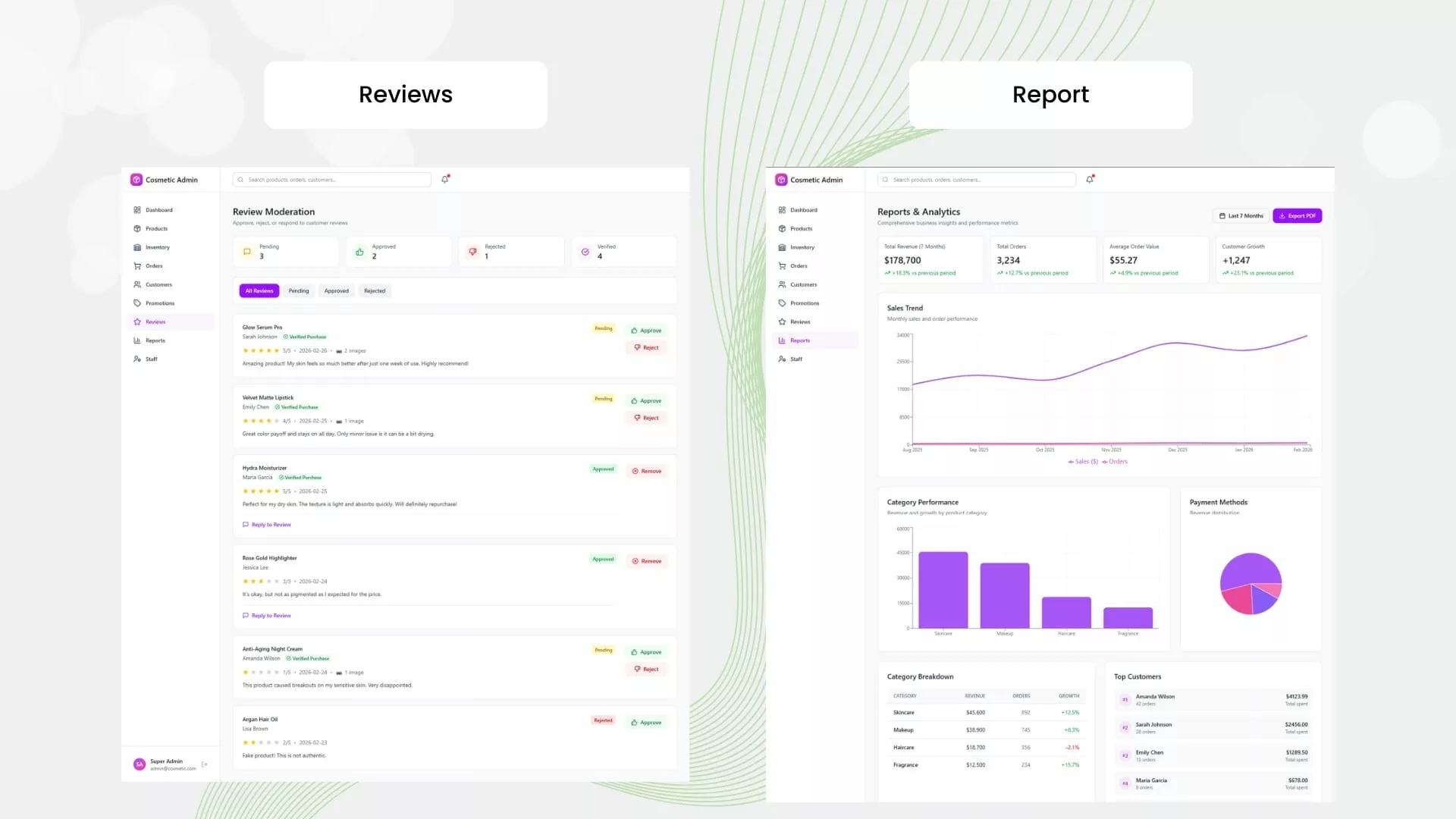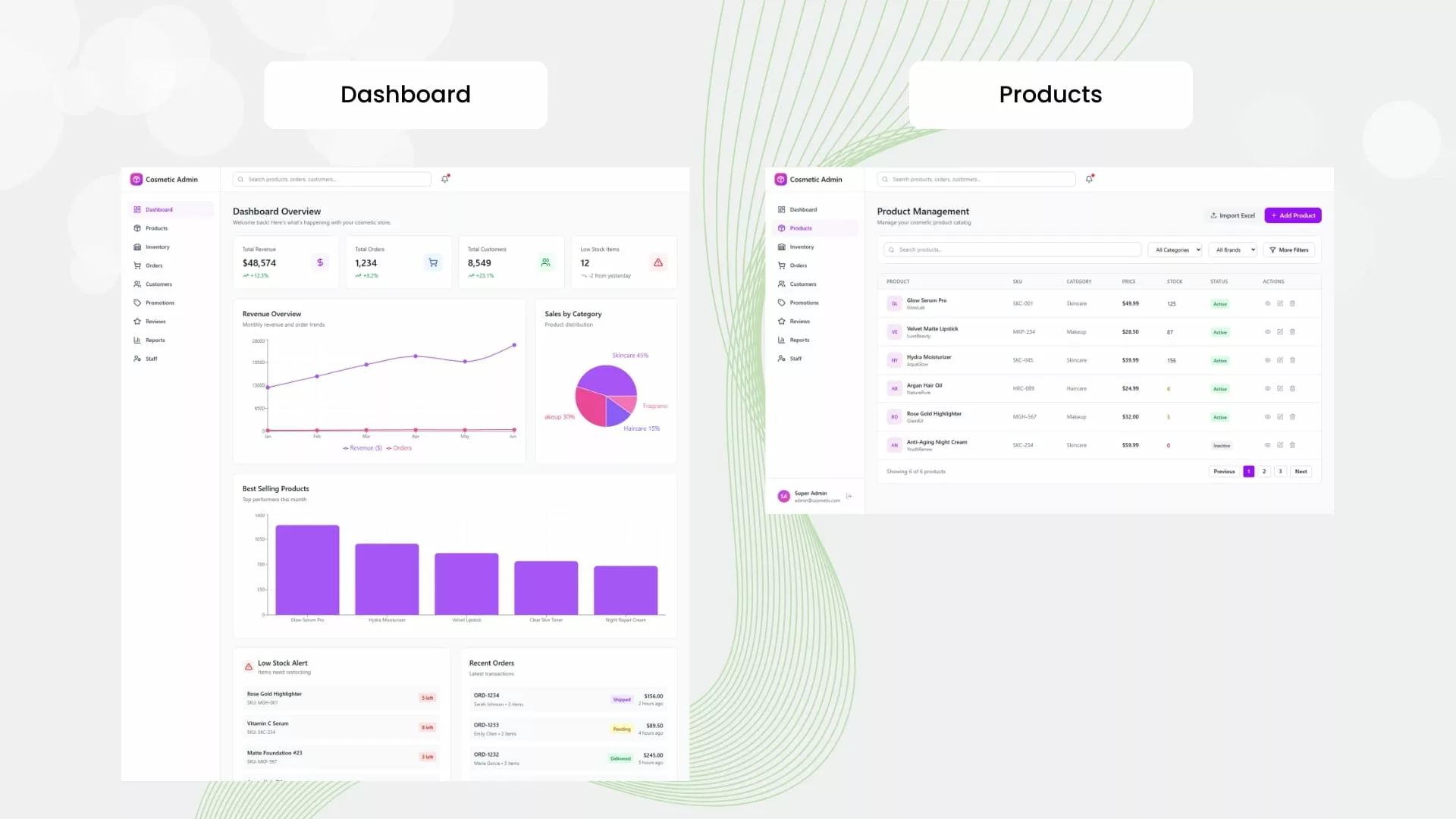 សម្រាប់អ្នក៖ គ្រប់គ្រង និងដាក់បង្ហាញផលិតផលគ្រឿងសម្អាងរបស់លោកអ្នក ជាមួយនឹងរូបភាពកម្រិតច្បាស់ ការរៀបរាប់ពីផលិតផល និងតម្លៃ ដែលអ្វីៗទាំងអស់នេះអាចធ្វើទៅបានតាមរយៈផ្ទាំងគ្រប់គ្រង (Admin Panel) ដ៏ងាយស្រួល។