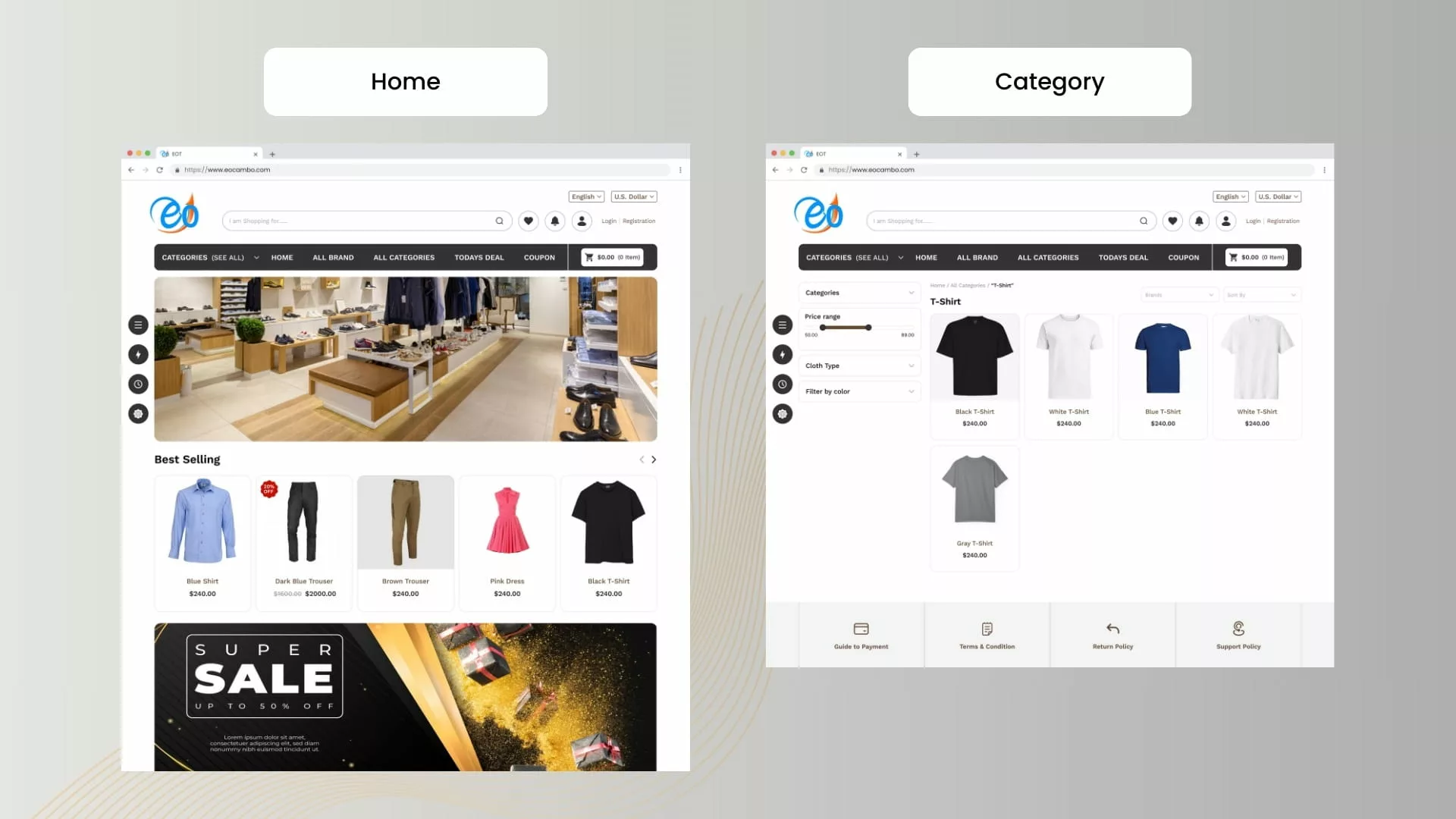 Enables customers to quickly find products by filtering based on category, size, color, brand, price range, or collection.