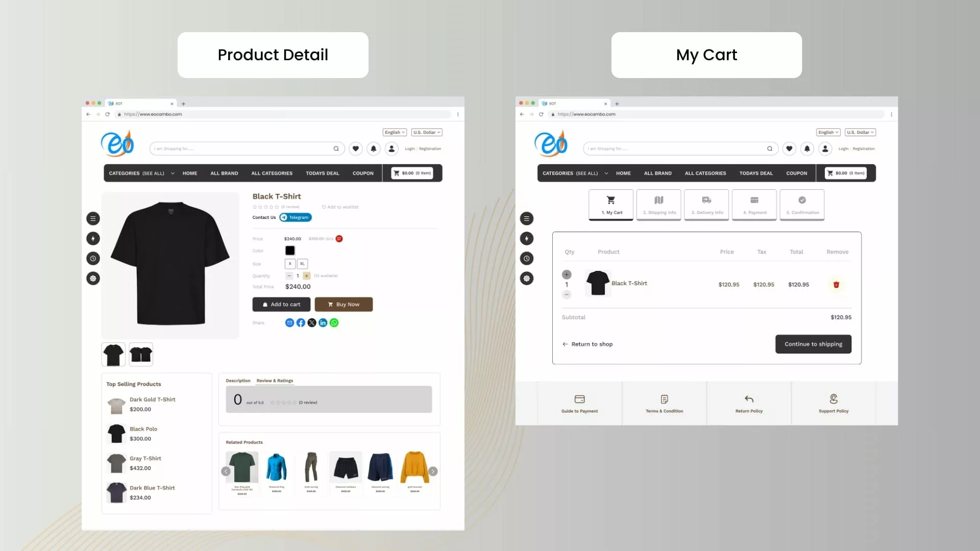 Lets customers review selected items, adjust quantities, or remove products before proceeding to checkout.