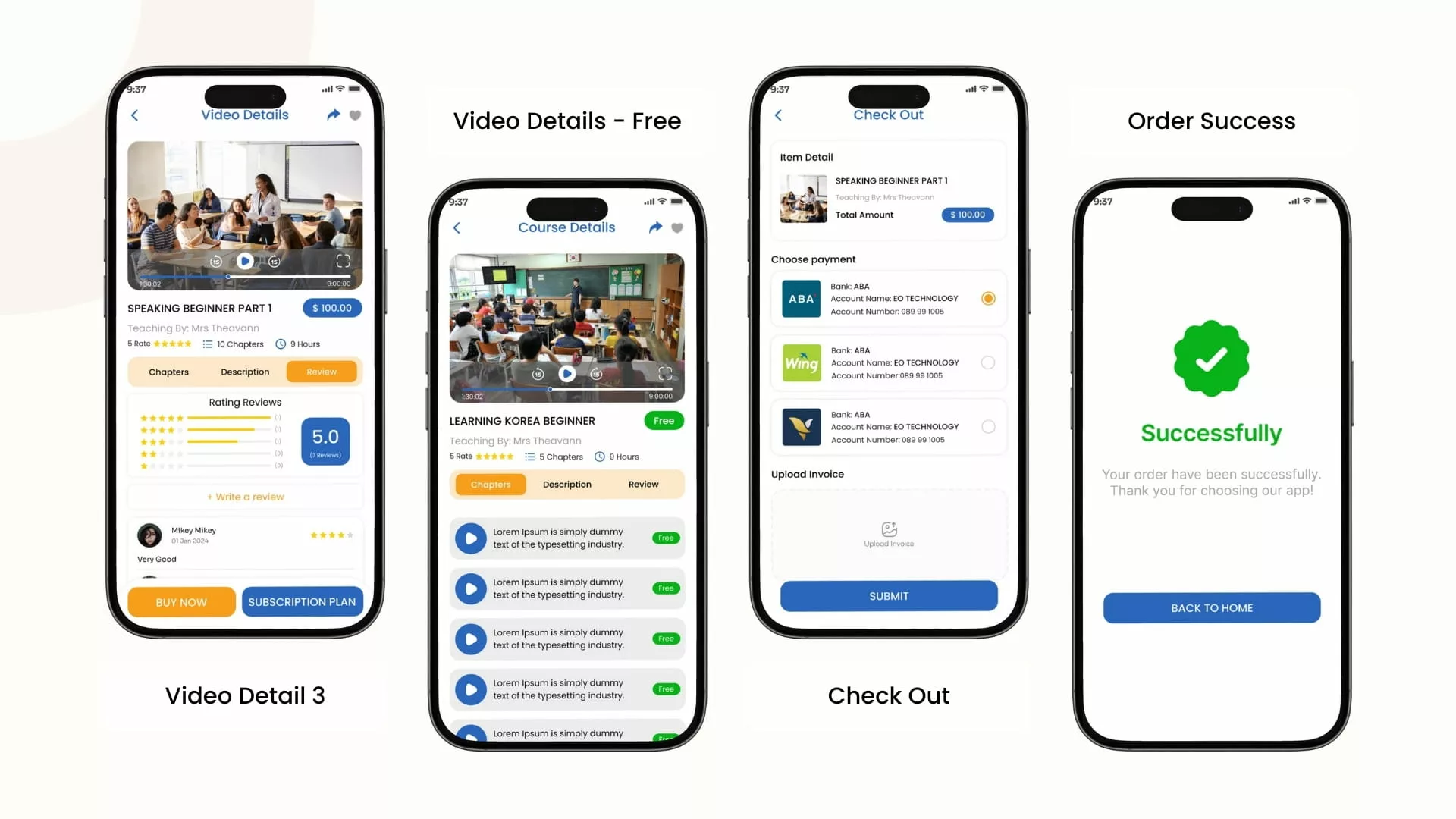 For Learners: Keep track of lessons completed and revisit videos easily using progress tracking and resume features.